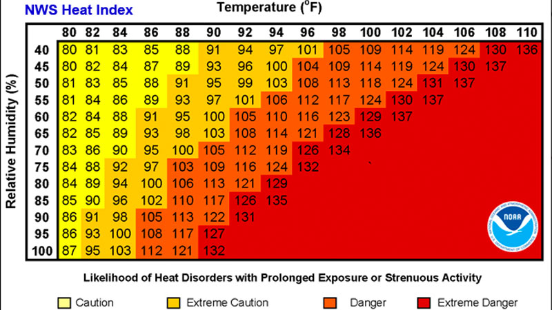 The National Oceanic and Atmospheric Administration branch of the National Weather Service has developed the heat index, which is another common method of measuring heat stress in work environments. The heat index represents both temperature and relative humidity to provide a more accurate representation of how temperature levels feel on the human body.