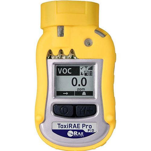 The ToxiRAE Pro PID from RAE Systems, a personal photoionization detector (PID), designed to monitor over 300 volatile organic compounds (VOCs) in real time. This monitor uses a 10.6 eV lamp and advanced PID sensor to detect low-level VOC threats quickly and accurately. The monitor also includes an onboard library of 190 correction factors and can display equivalent readings for specific target gases.
